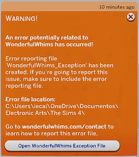 Hi, I installed it correctly and when I try to log in, the error appears: wonderfulwhims_exceptions